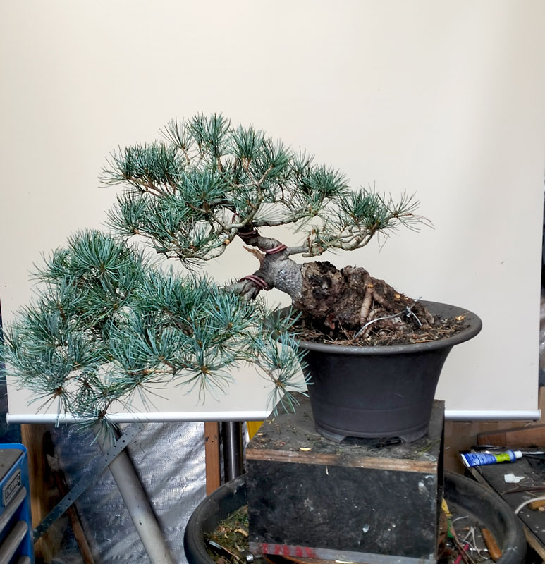 I cut the top half of the foliage off. You can already see the difference it makes and how the best features of the tree (being the trunk and shari) are now much more prominent.