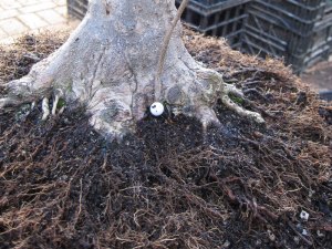 Once the roots are all in order you can continue to pot up the tree. In this case it went back into the same pot.
