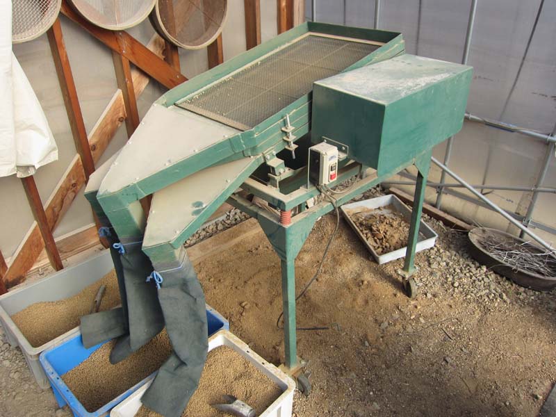 In one of the green houses at the back of Taisho-en I spotted a sifting machine.