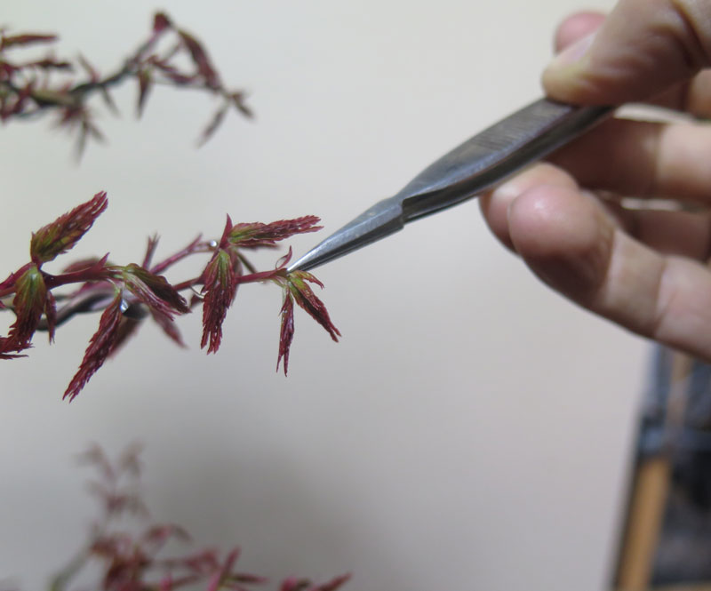 There’s something satisfying about pinching Maples. I only really do this to trees in a refinement phase as it slows growth of the extending shoot and as a result keeps inter-node length short. Its a good technique to add that final tight twiggy-ness to the canopy. As it slows growth you probably dont want to use it on developing trees as it will slow down the rate of growth across the tree.