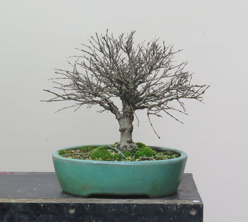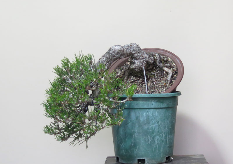 It really needed an angle change and a better pot. As luck would have it I have just got back from a trip to Japan where I found a pot I thought might work well with this tree.