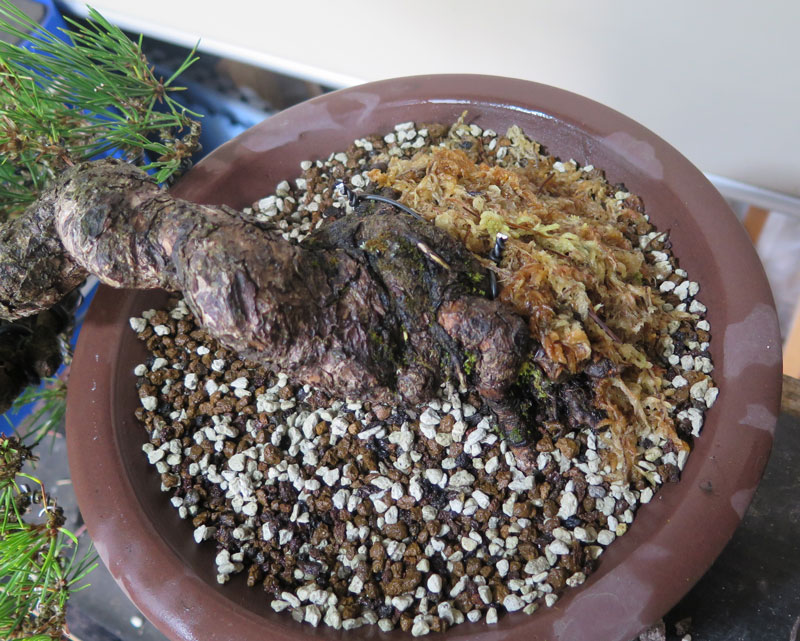 Another good friend gave me a pot that he thought would suit it (thanks Ken) and I went about reducing the root mass to a point where they would fit.