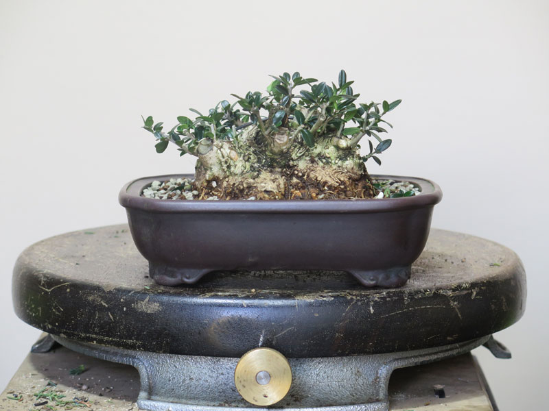 Everything is slowly improving year in year out and I am becoming particularly fond of the one in the Bikou pot. This tree was one of the original Chojubai in the country (a cutting from one of the plants imported in the 90’s).. It belonged to the late Richard Salvado, a friend and proponent of mini and shohin bonsai in Australia at a time when big trees were all the rage.