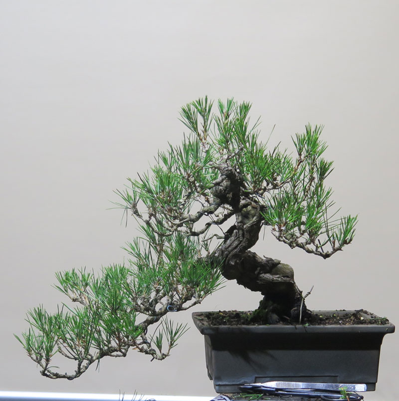 The remaining needles were a little shorter than i would have liked having been somewhat knocked about by my water issues and the overall styling is much more tight than that of the AABC demonstration (which I prefer), but as i see it this tree has a few years to grow out, extend a few branches, develop the ‘second apex’ etc. For this styling I focused on a tighter styling so that it sets a solid structure to then build future stylings upon.