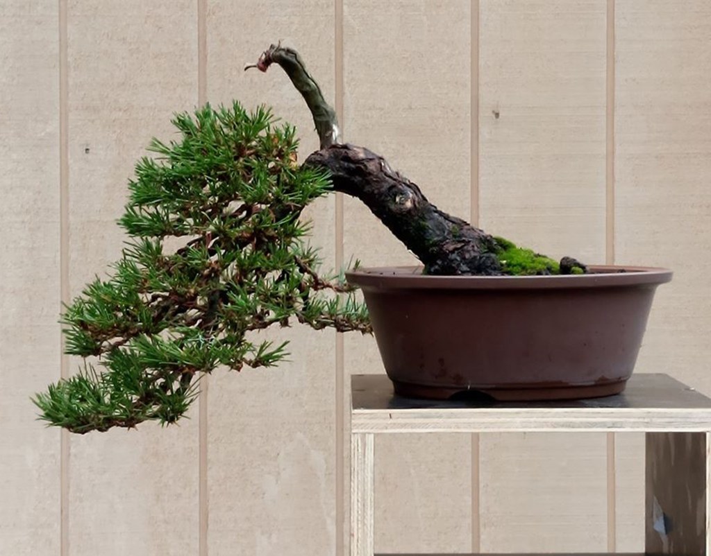 Although I have been told some people have an issue with the straight section of lower trunk, I really like the tree and don’t mind its irregular trunk. Perhaps in future re-pottings the owner could lower the planting level which might visually shorten the trunk line a little.