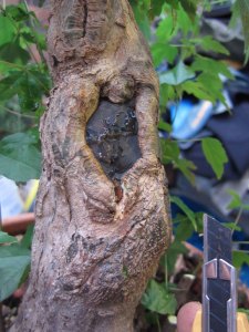 A week or so ago I had to do a demonstration on approach grafting for a local club so I took this tree in as an example and also placed some new grafts onto other areas of its trunk. It was a strange night as we had an earthquake in the middle of my talk. It was a small quake in world standards (5.4 on the Richter scale) but it was the first I had felt. The building shook, doors rattled but it only lasted for about 30 seconds and the talk soon continued. It certainly added an interesting break in the night.