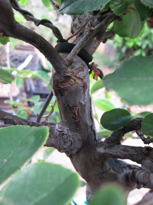 After I finished placing the graft on the trident maple I decided it was also a good time to clean up a graft on a Chinese Quince from last season. If you look closely you can see the difference in thickness between the grafted branch and the stub that use to be connected to the parent whip.