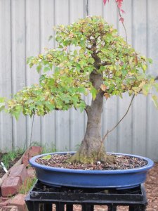 This year has seen some dramatic changes to my bonsai. The most major of these was moving house and gaining some backyard space. My trees previously were kept in amongst a lush garden. On one hand this was good in that my bonsai were quite sheltered and there was a good micro climate in which to grow amongst. The down side was that I could never really rid my trees of pests as once the garden was infected everything was. As a result my trees ended up with a number of pest problems. Now I have moved I hope to rid them of these problems, which brings me to the subject of this post, my Trident Maple.