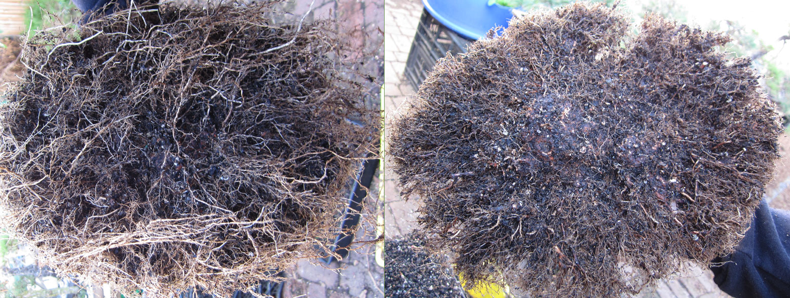 Once the roots are all in order you can continue to pot up the tree. In this case it went back into the same pot.