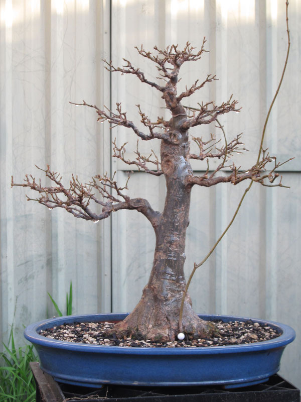 I originally grew this as stock from a cutting and put some early bends into the trunk line. Soon after the wiring of the cutting i gave it to a friend who did the bulk of the work in forming it into a tree and growing it on.
