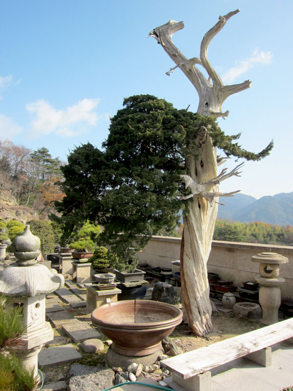 Before I left for Japan a friend (who runs an interesting blog) asked me to take some pictures of bonsai from the side so he could get a good idea of how the trunk lines and apex were constructed.
