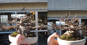 Before I left for Japan a friend (who runs an interesting blog) asked me to take some pictures of bonsai from the side so he could get a good idea of how the trunk lines and apex were constructed.