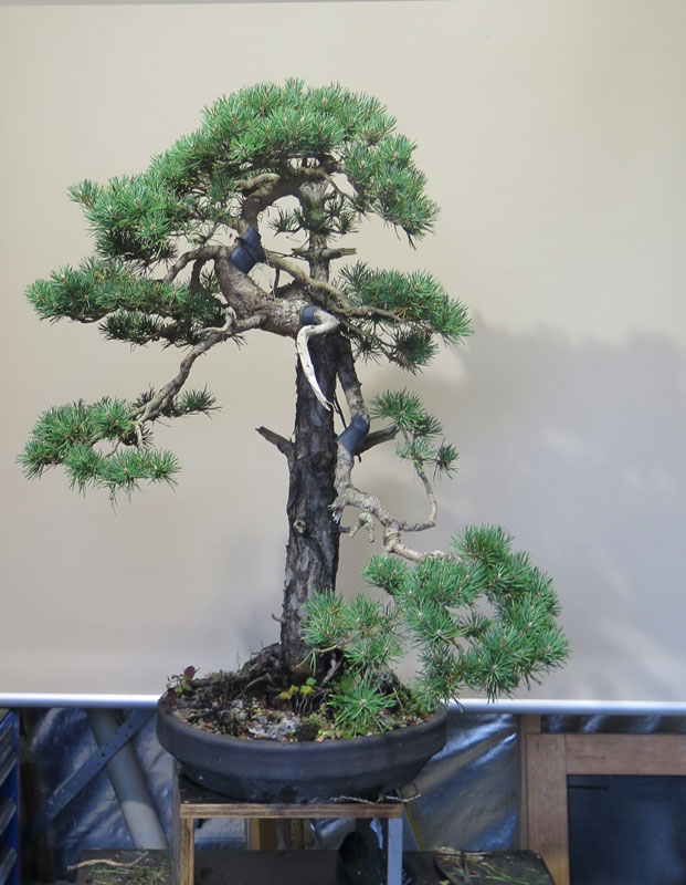 The remaining needles were a little shorter than i would have liked having been somewhat knocked about by my water issues and the overall styling is much more tight than that of the AABC demonstration (which I prefer), but as i see it this tree has a few years to grow out, extend a few branches, develop the ‘second apex’ etc. For this styling I focused on a tighter styling so that it sets a solid structure to then build future stylings upon.
